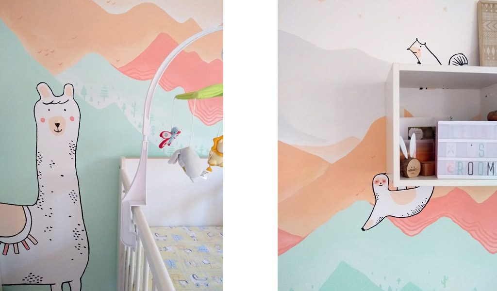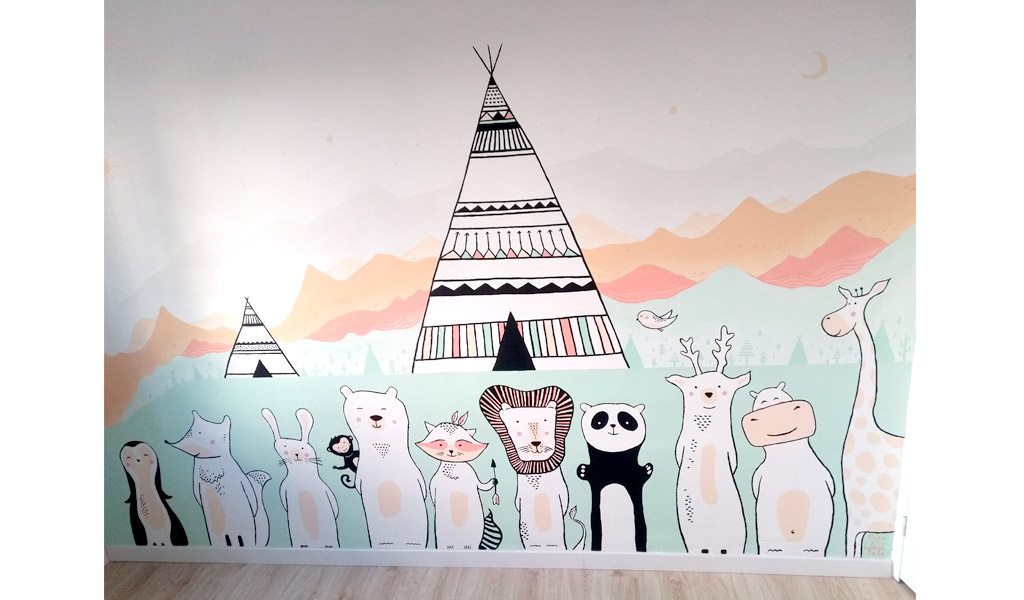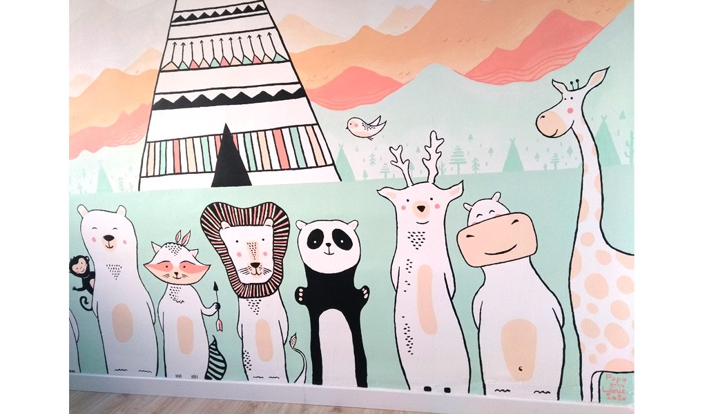 CHAMBRE D’ENFANT Peinture murale d’une chambre de petite fille, Mademoiselle discute avec les animaux !