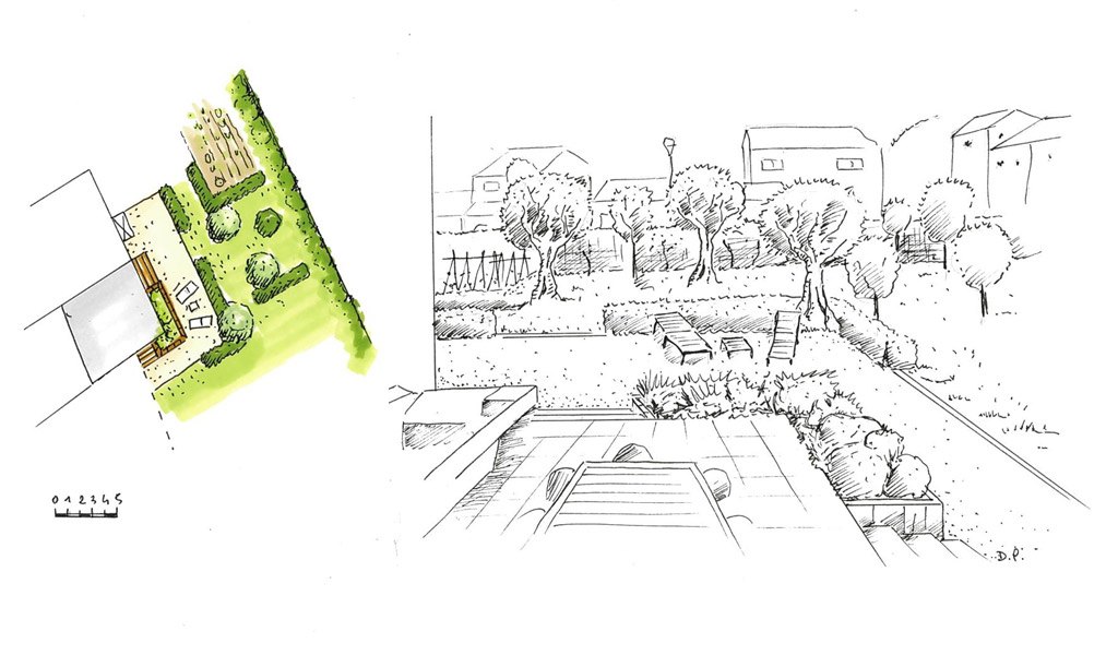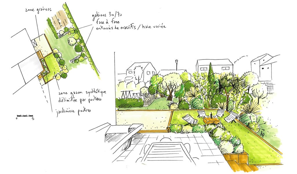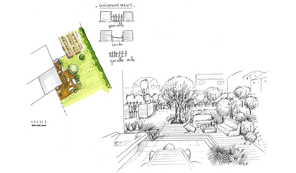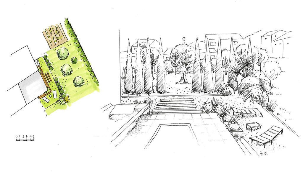 PROJET AF Proposition pour les aménagements extérieurs d’une propriété à l’habitation rénovée – Département (11)Objectif : caché le vis à vis d’un lotissement récemment créé.